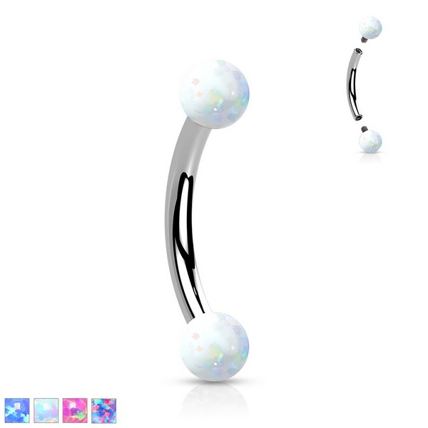 Микробанан из хирургической стали 316L с внутренней резьбой, украшен шариками из лабораторного опала.