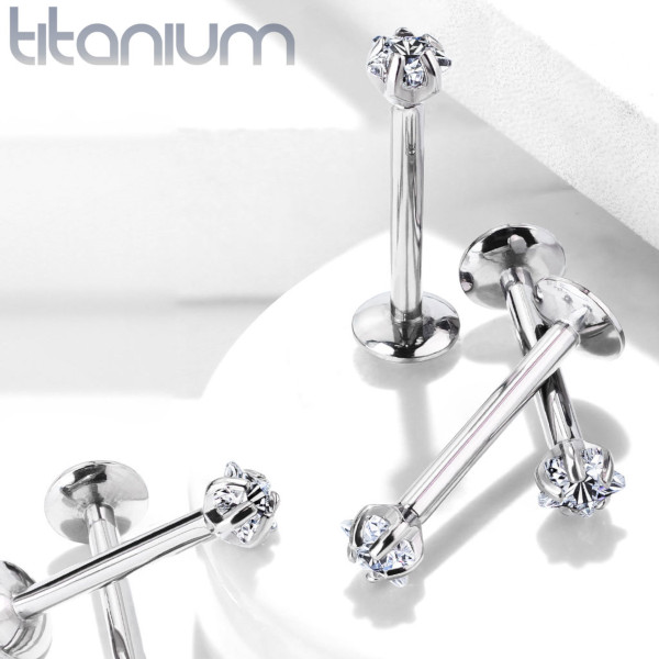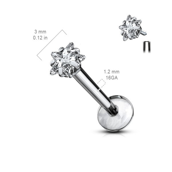 Лабрет из имплантационного титана 6Al-4V-Eli ASTM: F-136 с внутренней резьбой. Украшен кристаллом в форме звезды.