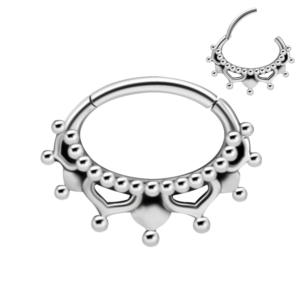 Кликер из хирургической стали 316L с изящным узором. Представлена также вариация с  PVD покрытием жёлтого золота.