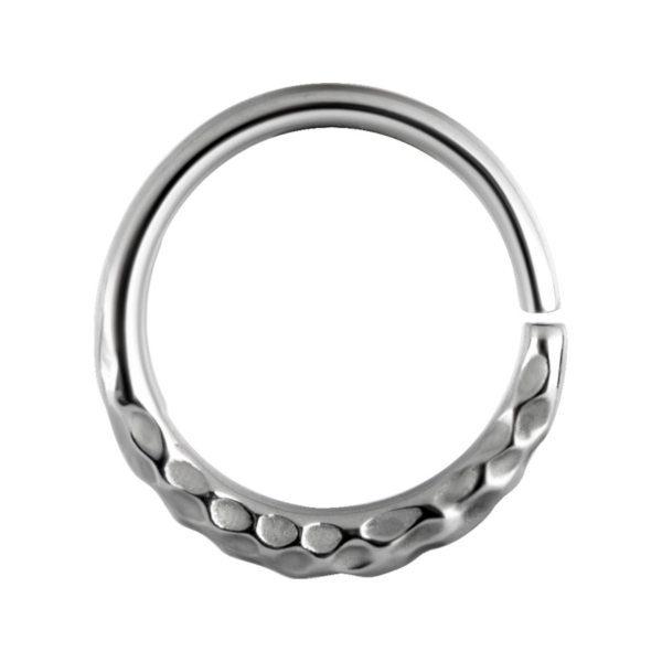 Раздвижное кольцо из хирургической стали 316L с рельефной декоративной частью.