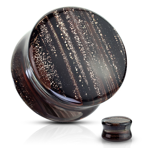 Плаги с бортами из боросиликатного стекла с потоками бронзовых искр.