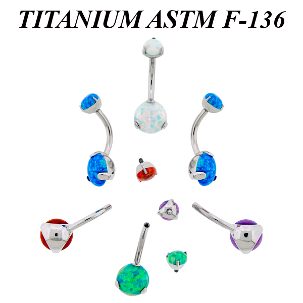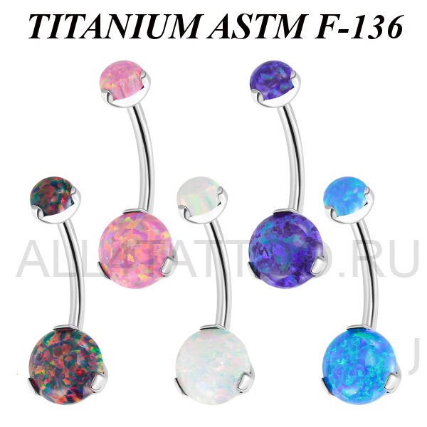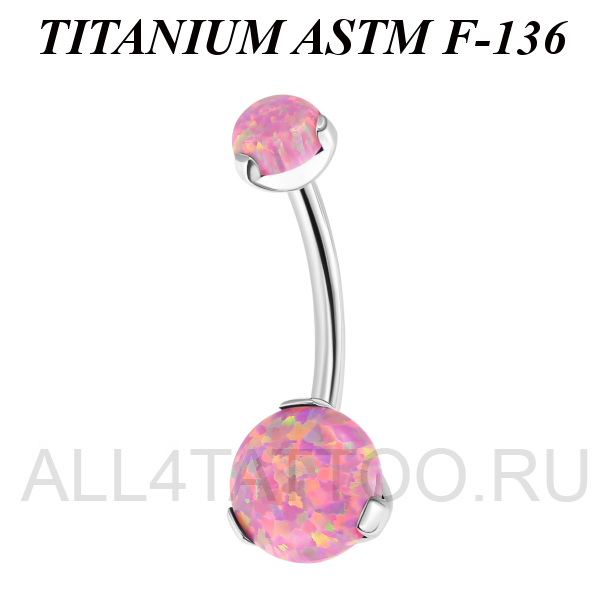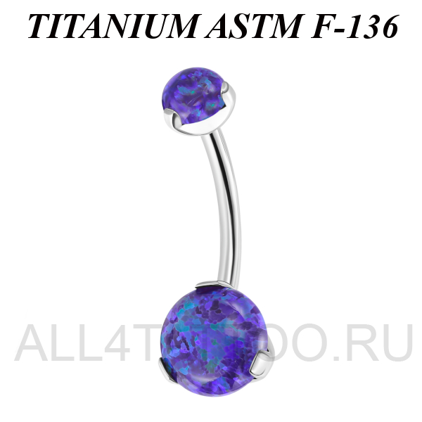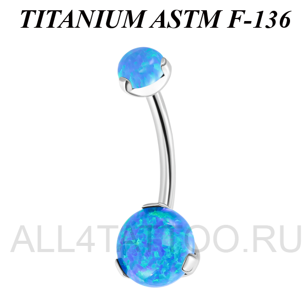 Банан из имплантационного титана 6Al-4V-Eli ASTM: F-136 с внутренней резьбой. Украшен лабораторными опалами.