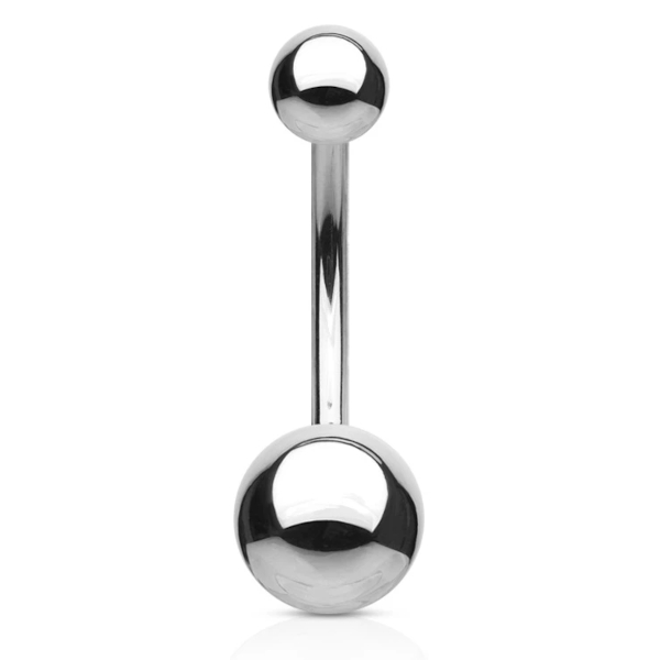 Банан из хирургической стали 316L. В таблице указан диаметр нижнего шарика, диаметр верхнего шарика 5мм для 8мм-го нижнего, 4мм - для 6мм-го нижнего. Внешняя резьба.