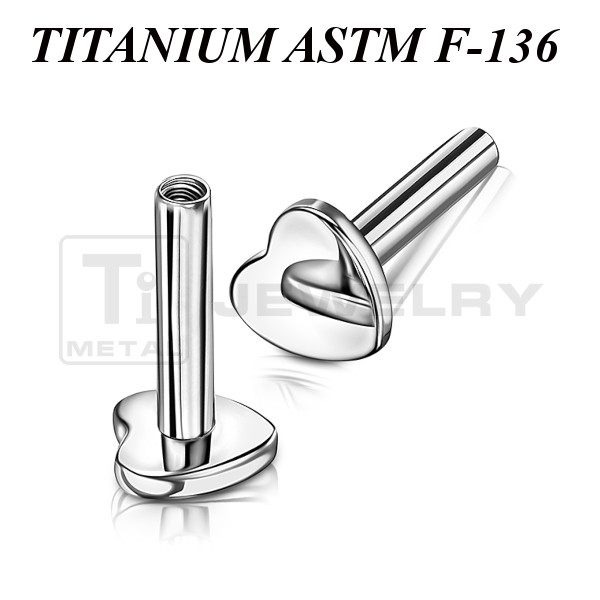 Основа для лабрета с внутренней резьбой из имплантационного титана 6Al-4V-Eli ASTM: F-136 с основанием в форме сердца.