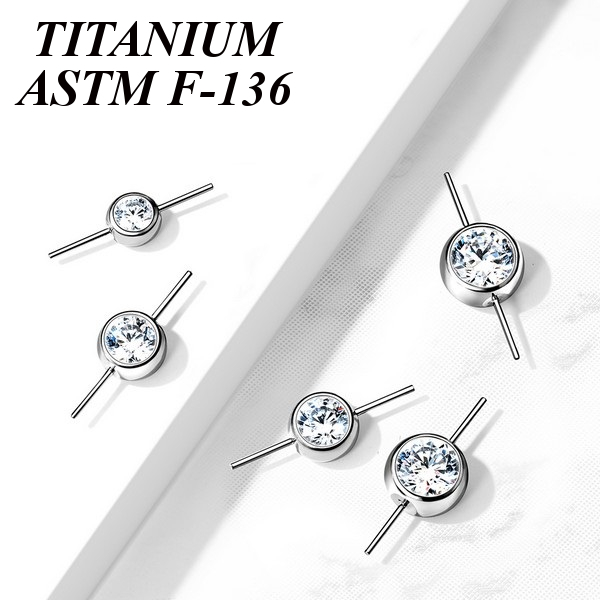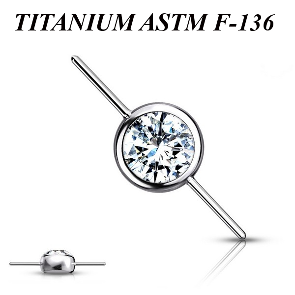 Коннектор из имплантационного титана 6Al-4V-Eli ASTM: F-136 для безрезьбовых украшений. Украшен прозрачным фианитом.