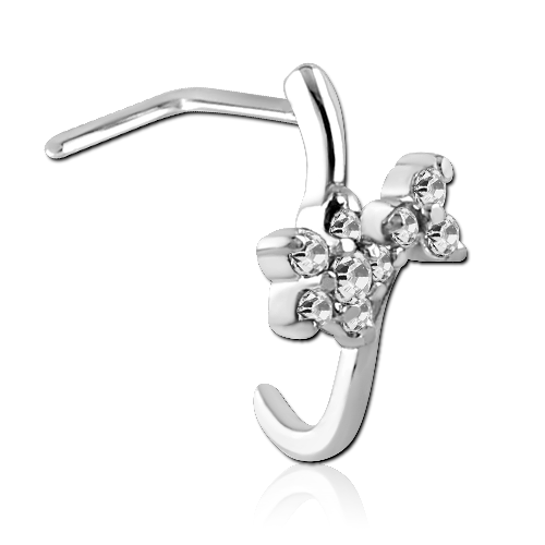 Нострил из хирургической стали 316L. Украшен фианитами в виде цветка.