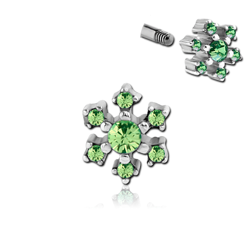 Накрутка из хирургической стали 316L с кристаллами. Размер накрутки 6,7х6,7мм. Подходит для украшений толщиной 1,2мм с внешней резьбой.