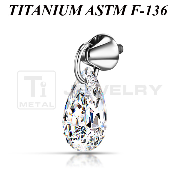 Накрутка из имплантационного титана 6Al-4V-Eli ASTM: F-136 в виде пики с подвеской из фианита в форме капли. Размер пики: 3х3мм, размер подвески: 6х4мм.