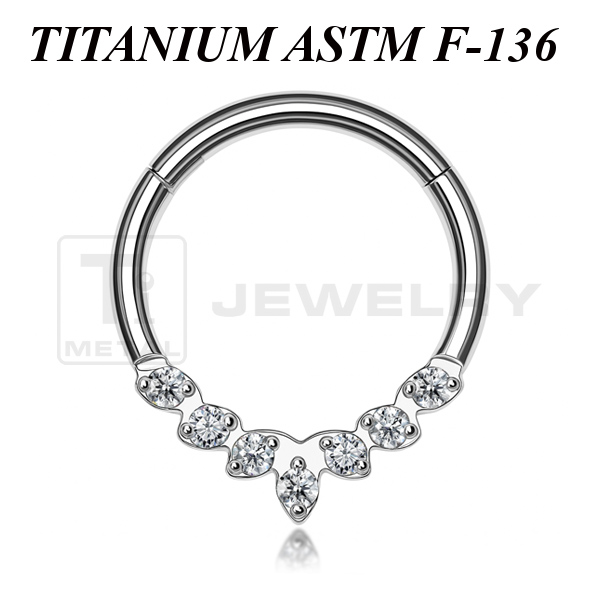 Кликер из имплантационного титана 6Al-4V-Eli ASTM: F-136 с прозрачными фианитами.