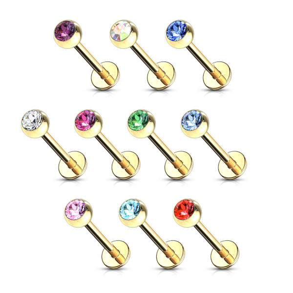 Лабрет из хирургической стали 316L с золотым IP покрытием и стразом.